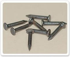Made with high carbon steel and hardened for maximum hold in the hard concrete substrate, heavy duty concrete flooring nails are used with hard concrete when 12 gauge nails break or bend when driven. 5/8 inch nails and longer are also used to install carpet tack strips. Shorter concrete flooring nails are used to install metal molding when the nail heads will be covered by the carpet.